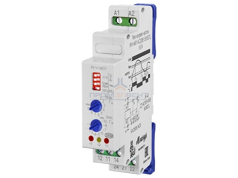 Заявки принимаются с реквизитами через почтуРеле контроля частоты используется для контроля частоты переменного напряжения. Реле обеспечивает контроль частоты 50 или 60 Гц. Реле РКЧ-М01 контролирует частоту напряжения питания. Реле может использоваться для контроля частоты в однофазных и многофазных сетях с фиксированной задержкой срабатывания и регулиремыми порогами отключения исполнительного встроеннго реле. Реле допускает режим работы "без памяти" аварии и режим работы с "памятью аварии".