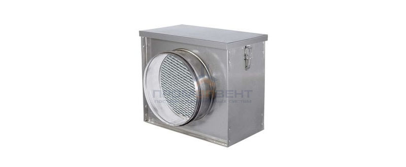 Жироулавливающий фильтр круглого сечения имеет внешнее сходство с плоским ячейковым фильтром, разница лишь в том, что внутри фильтр-кассета из металлических сеток без фильтрующего материала.